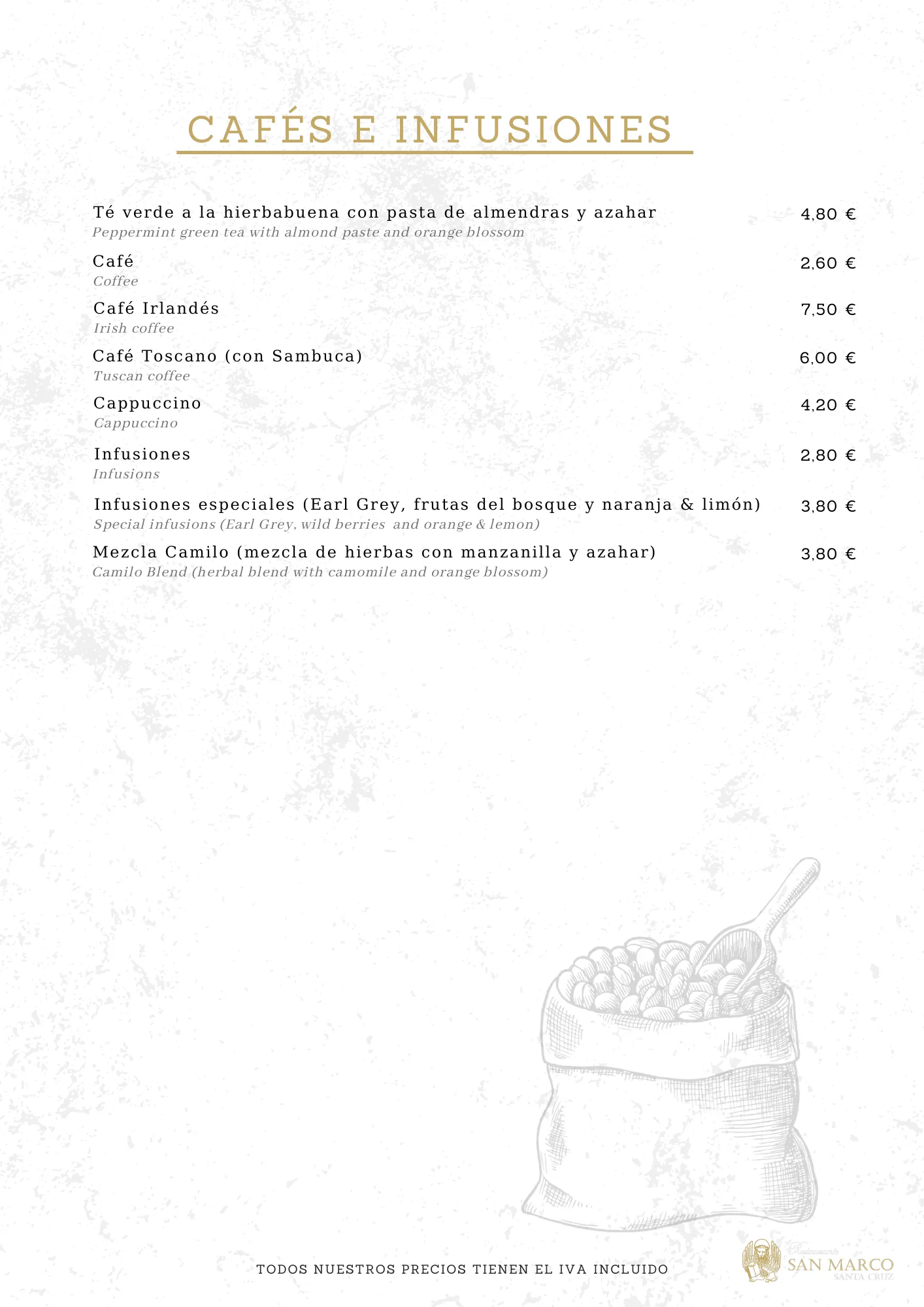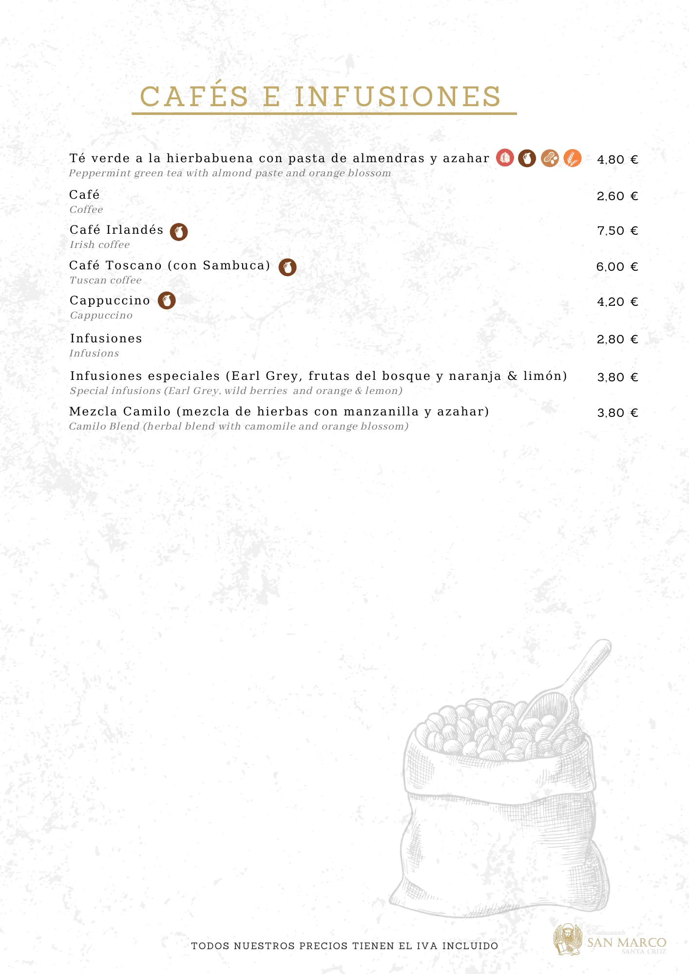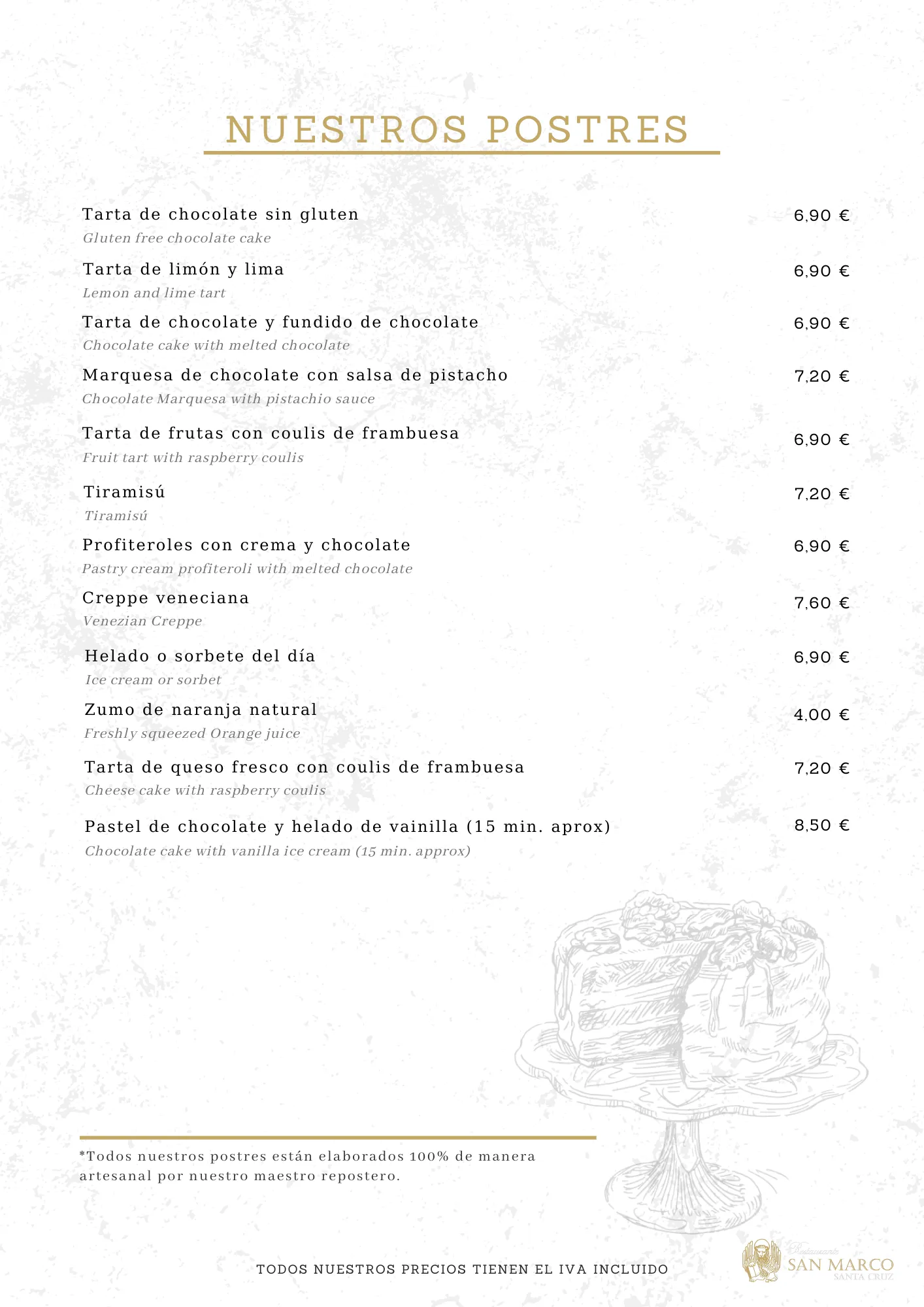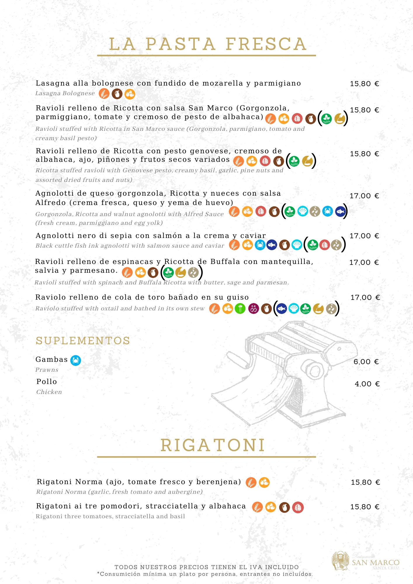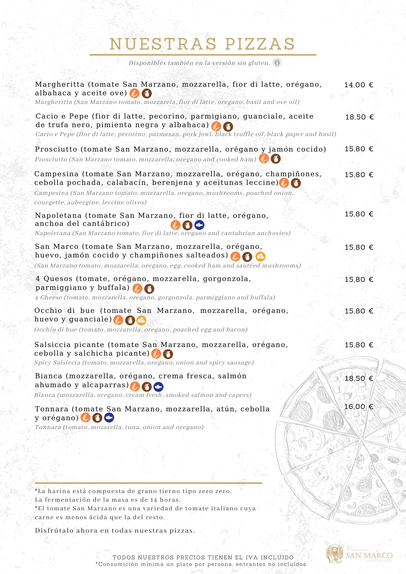Carta San Marco Santa Cruz Carta de postres caseros Carta de vinos Carta de bebidas Carta de alérgenos Regala una Tarjeta Invitación Ofrece una experiencia inolvidable. Comprar Reserva tu experiencia Reservar
